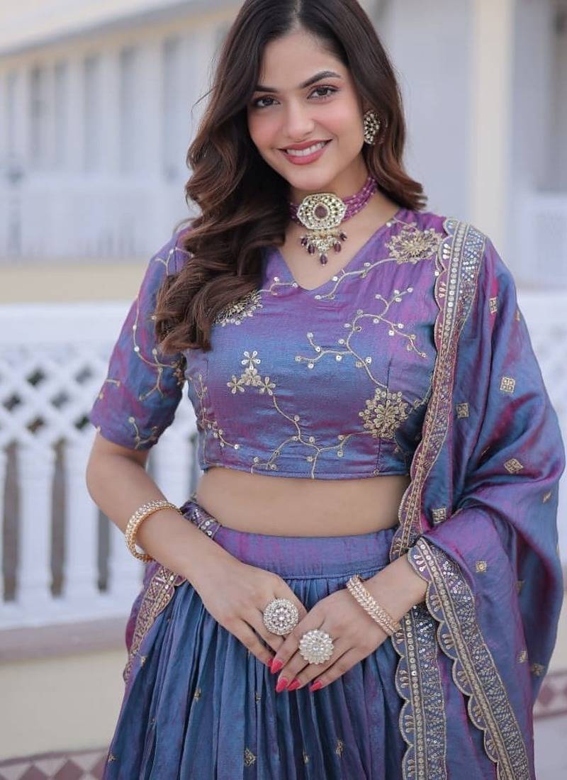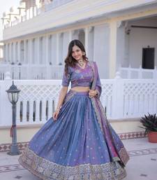 | Product Description | This Elegant Lavender Blue Lehenga Choli Features Delicate Golden Embroidery Across The Blouse And Skirt, Creating A Graceful Festive Look. The Flared Silhouette Enhances Movement And Elegance, While The Matching Embroidered Dupatta Completes The Ensemble. Perfect For Weddings, Receptions, And Festive Celebrations, Offering A Refined Blend Of Tradition And Modern Style. |