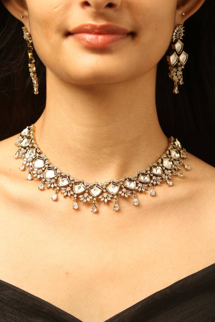 | Product Description | This Glamorous Crystal Necklace Set Showcases Brilliant Clear Stones Arranged In An Intricate Floral Inspired Design. The Layered Detailing Creates Luxurious Sparkle, While Long Chandelier Earrings Add Dramatic Elegance. Perfect For Brides, Receptions, And Formal Celebrations. |