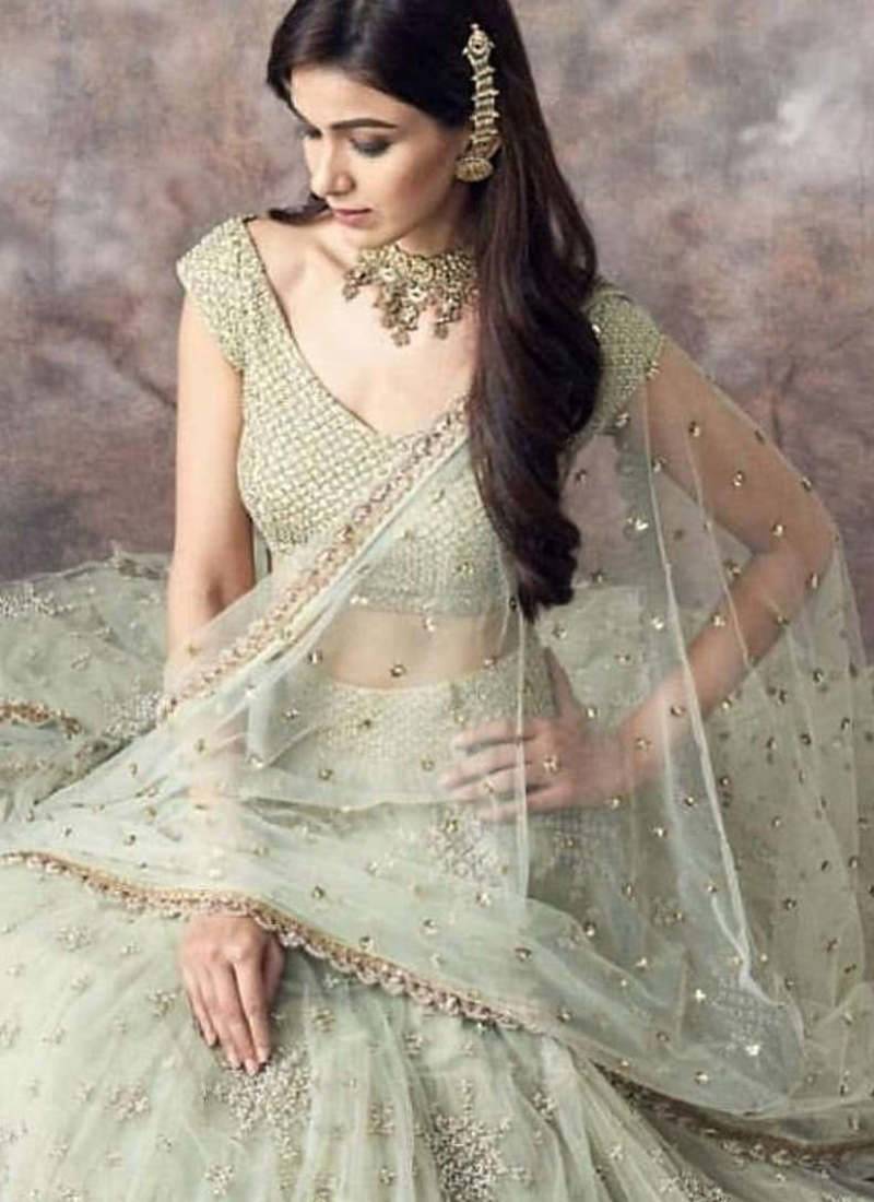 | Product Name | Pista Green Soft Net Embroidery Work Lehenga Choli Set With Dupatta | |