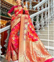 Pink orange zari woven silk blend saree