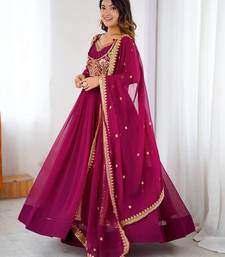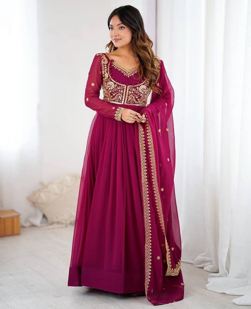 Faux georgette designer embroidery with sequince work anarkali, pant with dupatta set stitched
