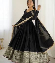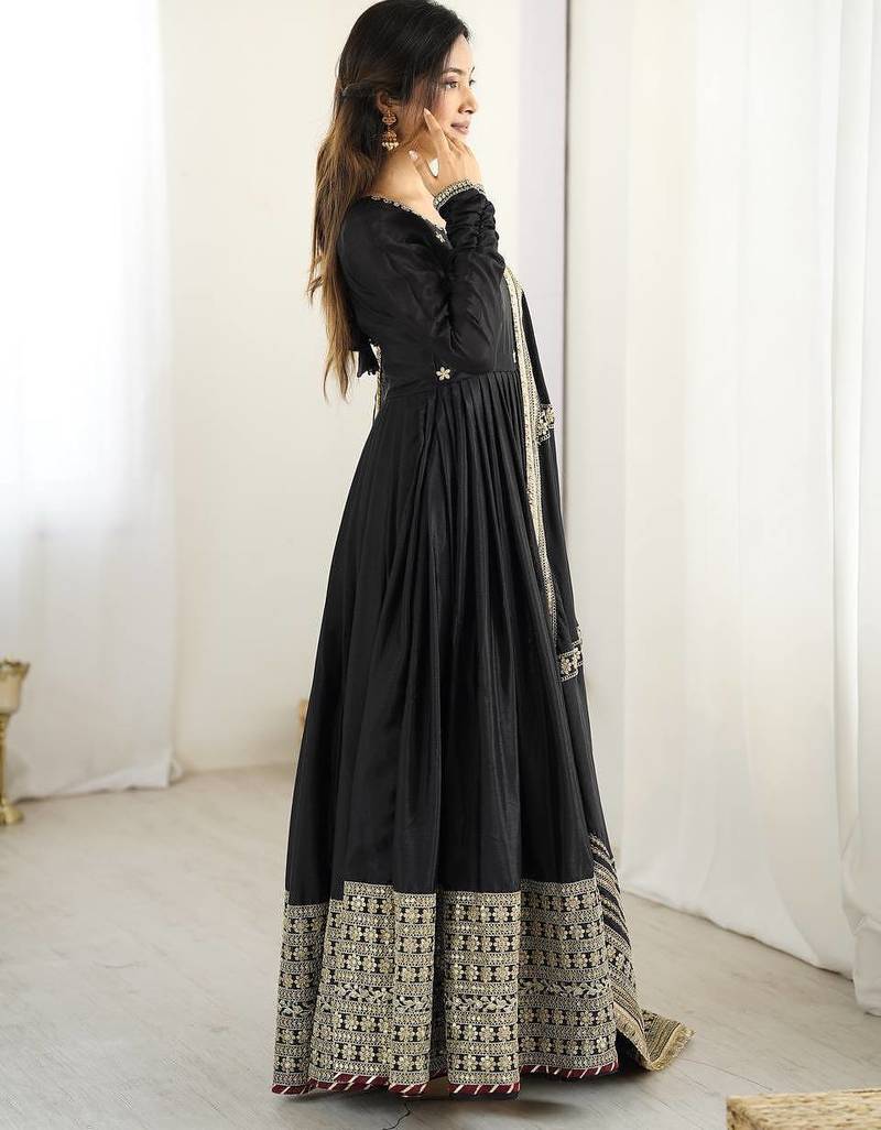 Heavy chinon silk thred with sequnce work anarkali gown dupatta set stitched