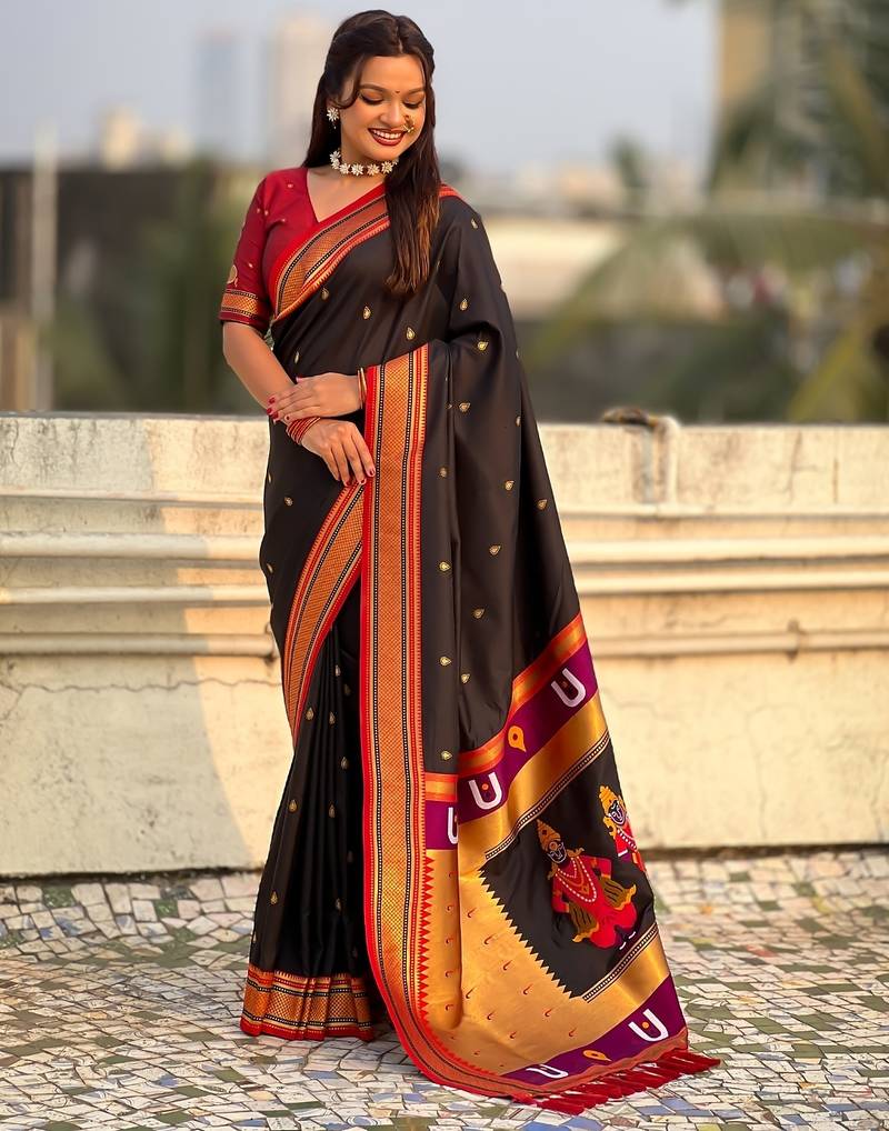Product Name Multicolor Tilak Zari Woven Soft Art Silk Traditional Paithani Saree With Unstitched Blouse