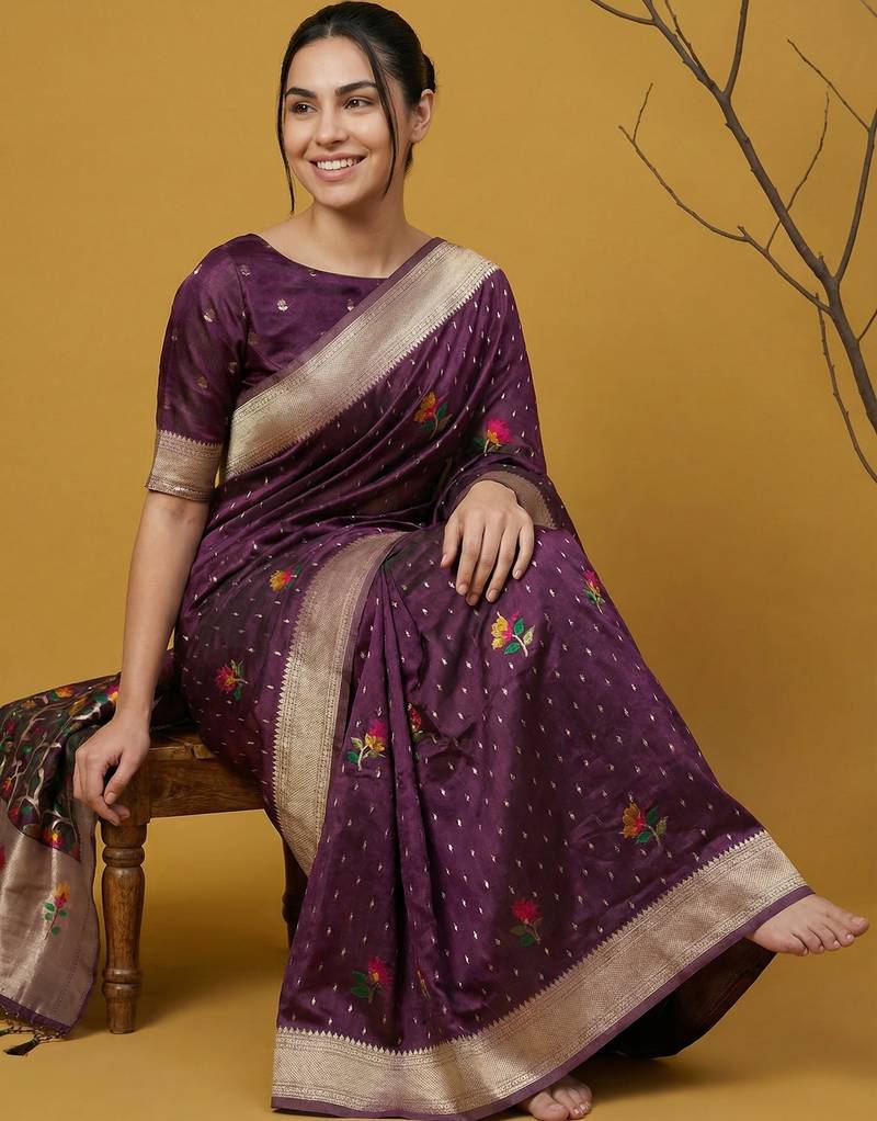 | Product Name | Soft Organza Meenakari Woven Saree With Jamdani Zari Pallu And Brocade Blouse | |