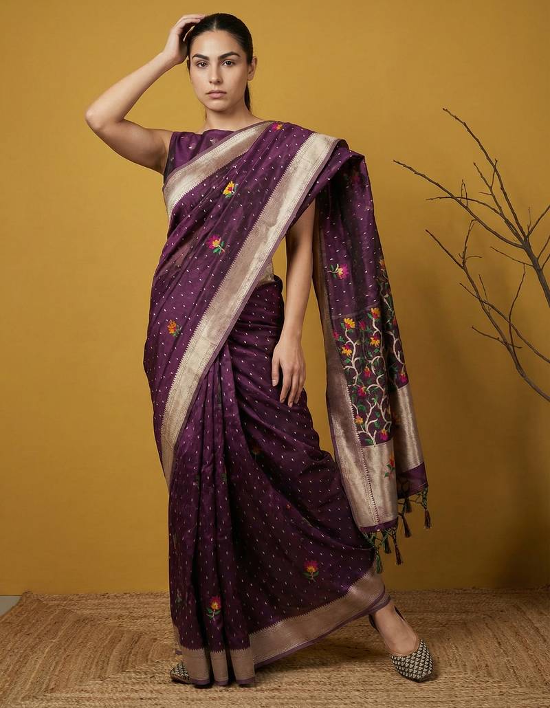 | • | Saree | : | Color- Wine / Fabric- Organza |