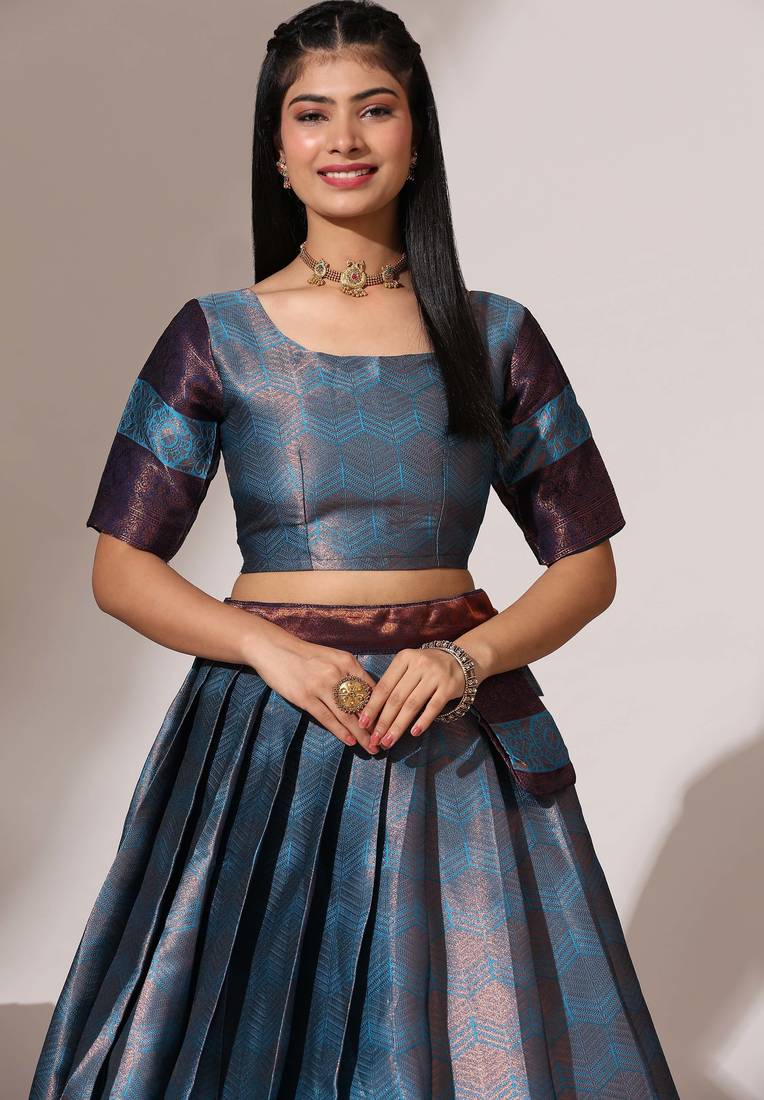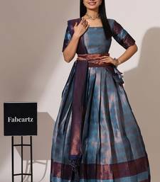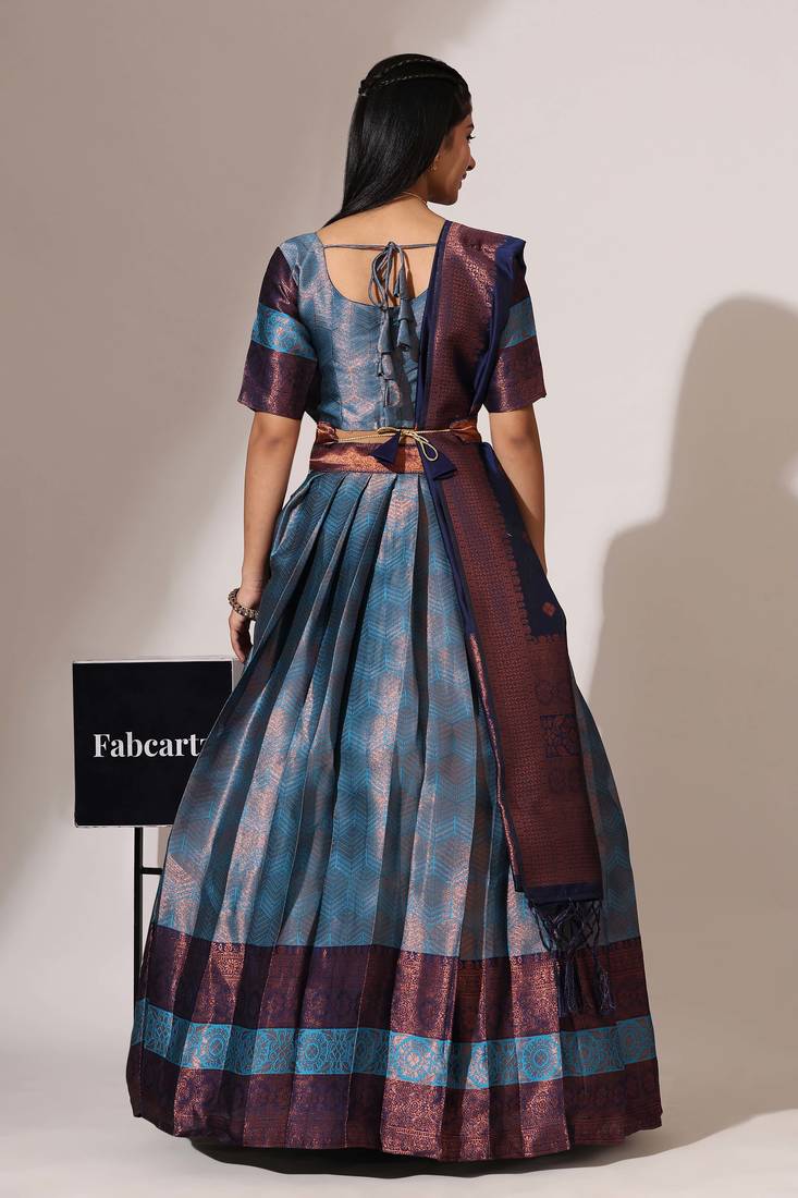 Beautiful south indian style semi-stitched half saree with blouse and banarasi dupatta for women