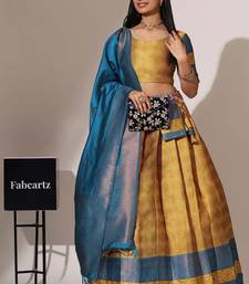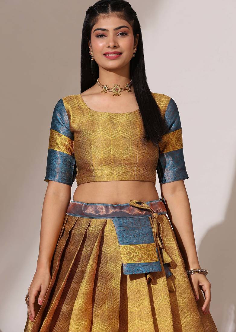 Beautiful south indian style semi-stitched half saree with blouse and banarasi dupatta for women