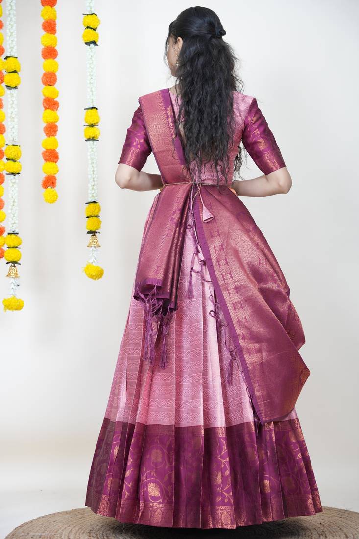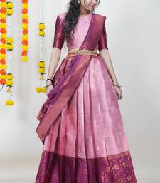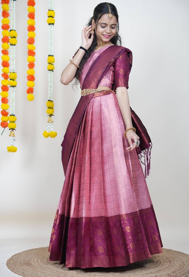 Beautiful south indian style semi-stitched half saree with blouse and banarasi dupatta for women