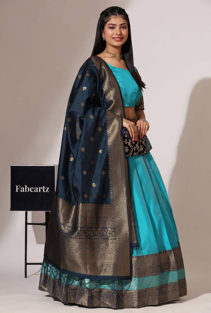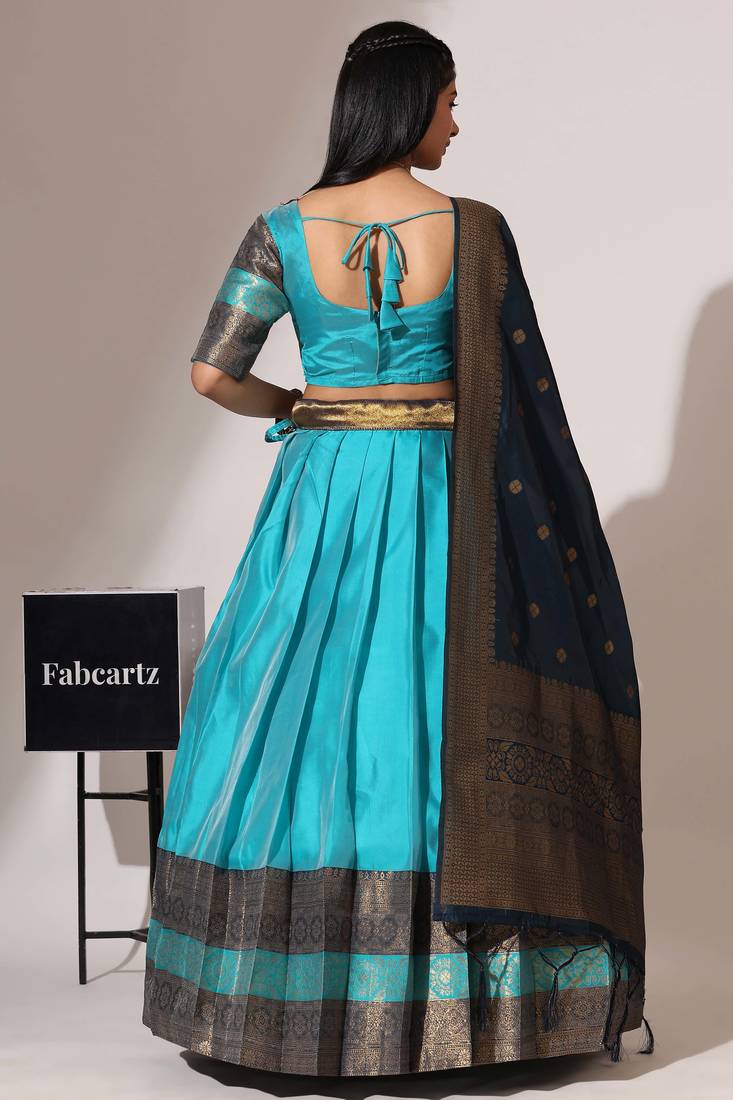 | Product Name | Beautiful South Indian Style Semi Stitched Half Saree With Blouse And Banarasi Dupatta For Women | |