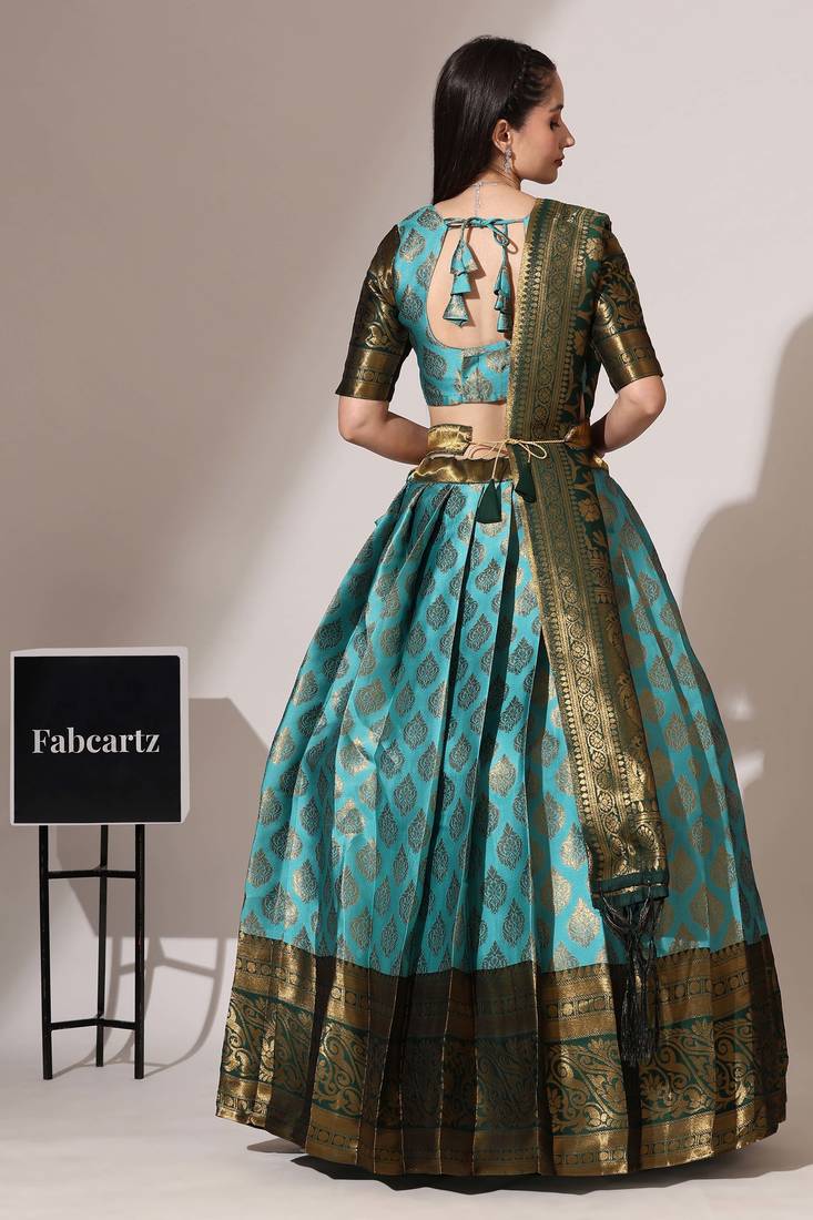 | Product Name | Beautiful South Indian Style Semi Stitched Half Saree With Blouse And Banarasi Dupatta For Women | |