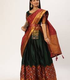 Beautiful south indian style semi-stitched half saree with blouse and banarasi dupatta for women