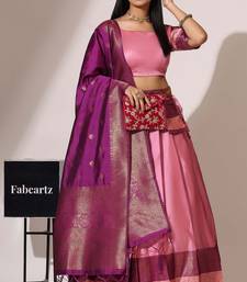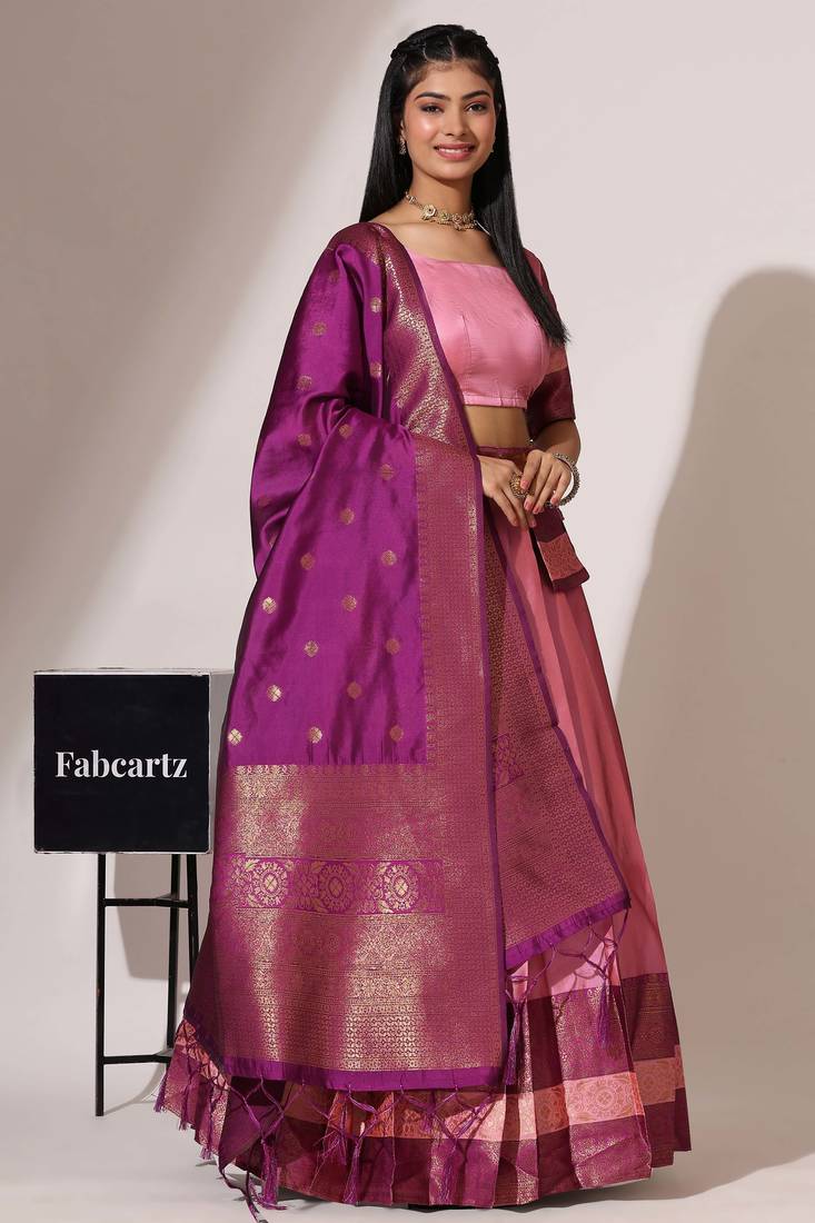 Beautiful south indian style semi-stitched half saree with blouse and banarasi dupatta for women
