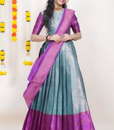 Beautiful south indian style semi-stitched half saree with blouse and banarasi dupatta for women