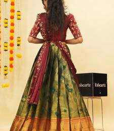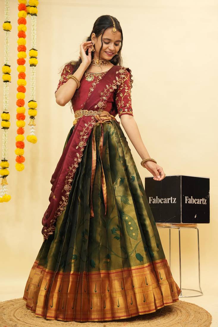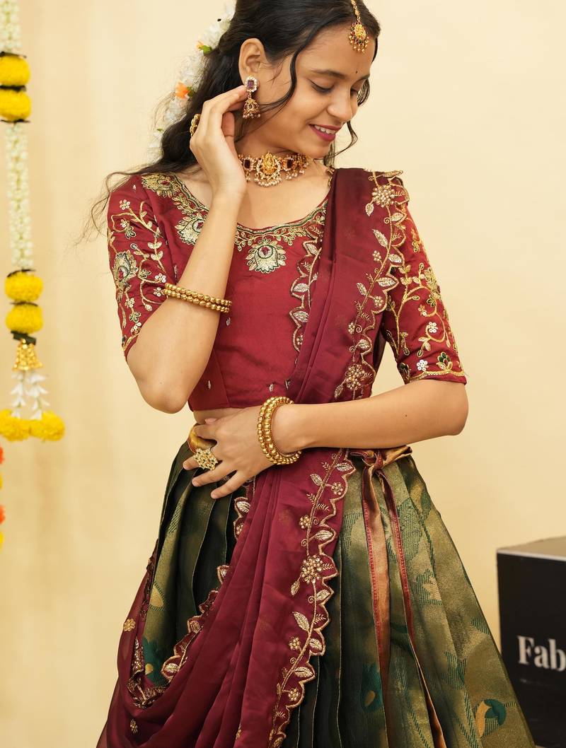 Beautiful south indian style semi-stitched half saree with blouse and dupatta for women