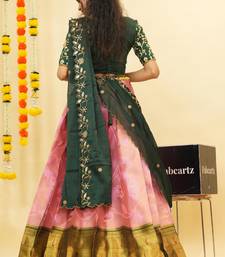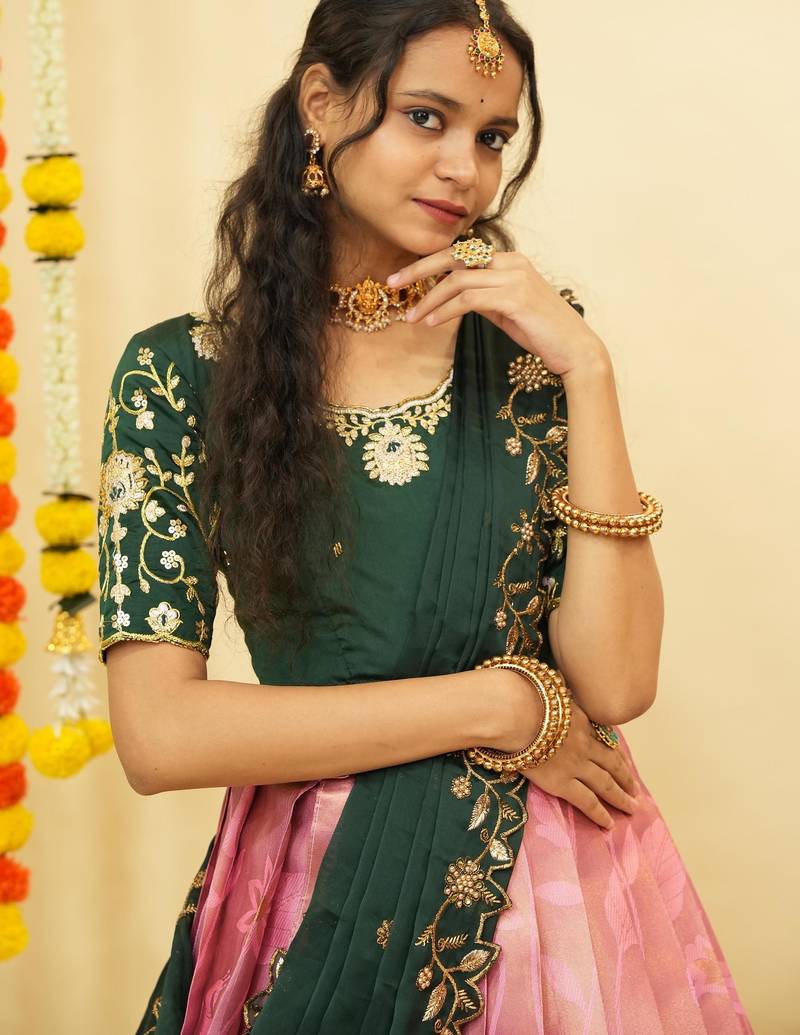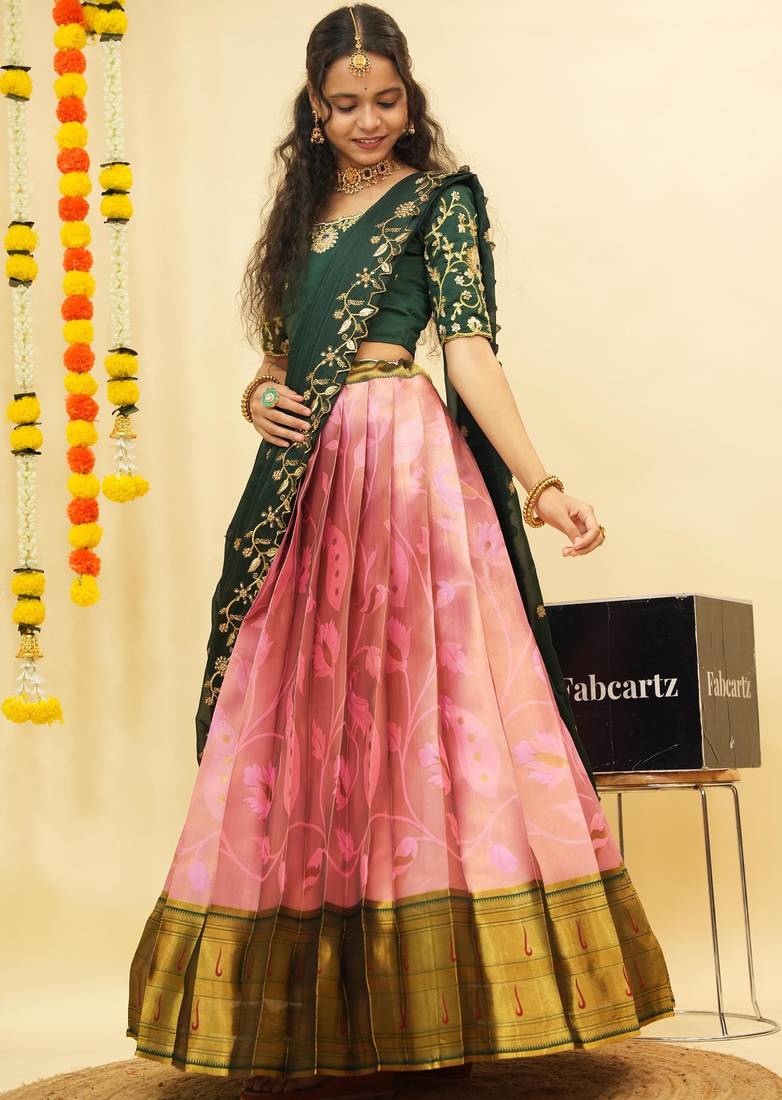 Beautiful south indian style semi-stitched half saree with blouse and dupatta for women