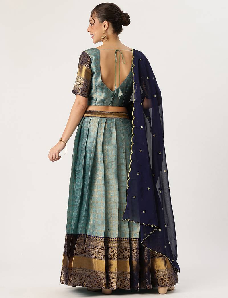 | Product Name | Beautiful South Indian Style Semi Stitched Half Saree With Blouse And Rangoli Dupatta For Women | |