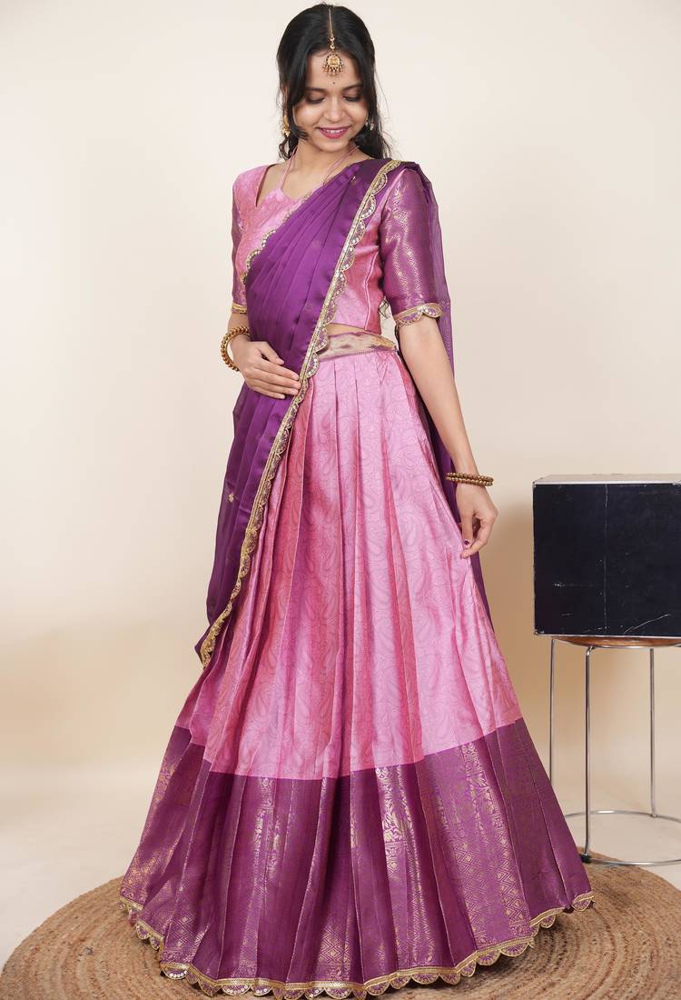 | Product Name | Beautiful South Indian Style Semi Stitched Half Saree With Blouse And Rangoli Dupatta For Women | |