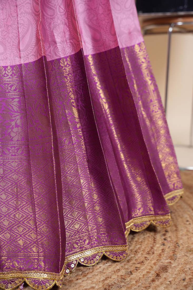 Beautiful south indian style semi-stitched half saree with blouse and rangoli dupatta for women