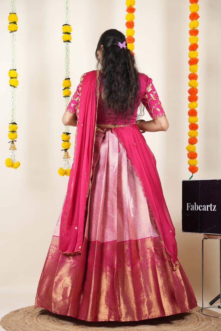 | Product Name | Beautiful South Indian Style Semi Stitched Half Saree With Embroidered Blouse And Rangoli Dupatta For Women | |