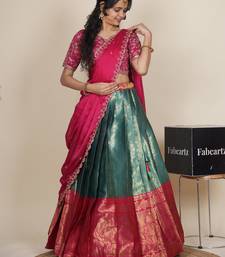 Beautiful south indian style semi-stitched half saree with embroidered blouse and rangoli dupatta for women