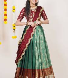 Beautiful south indian style semi-stitched half saree with embroidered blouse and rangoli dupatta for women