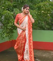 Cream soft silk meenakari zari weaving saree with contrast blouse piece