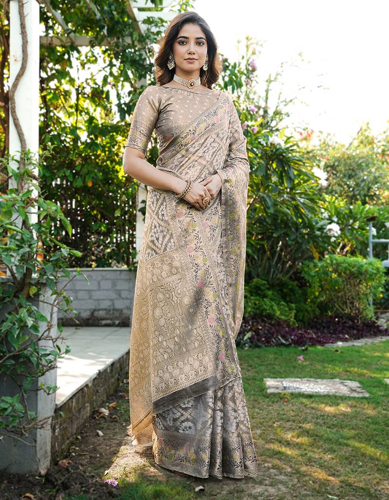 | • | Saree | : | Color- Grey / Fabric- Organza |