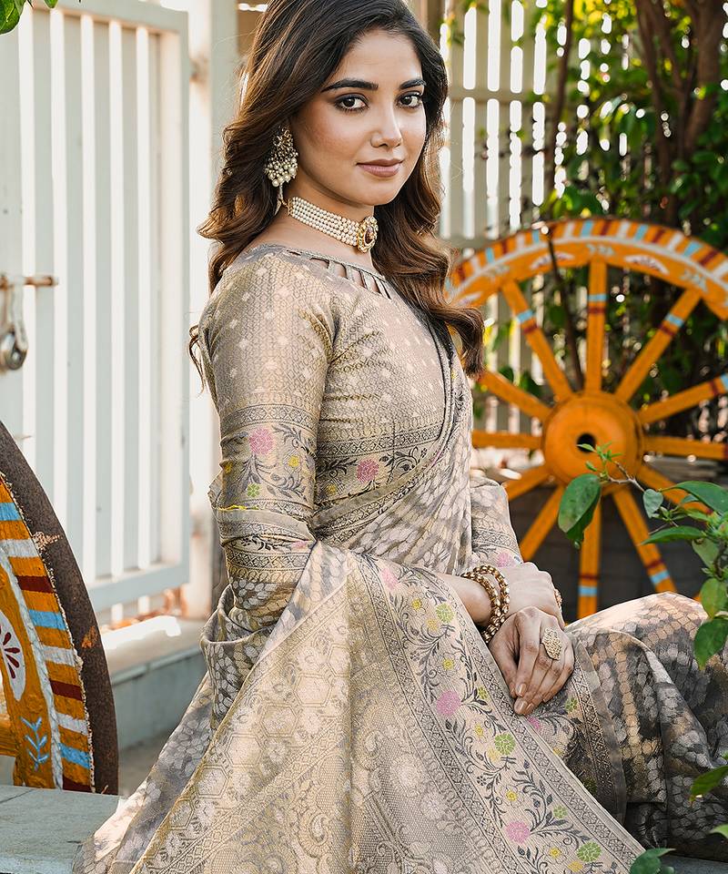 | Product Name | Grey Organza Silk Bandhani Patola Weaves Saree With Matching Blouse Piece | |