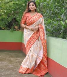 Off white soft silk meenakari zari weaving saree with contrast blouse piece