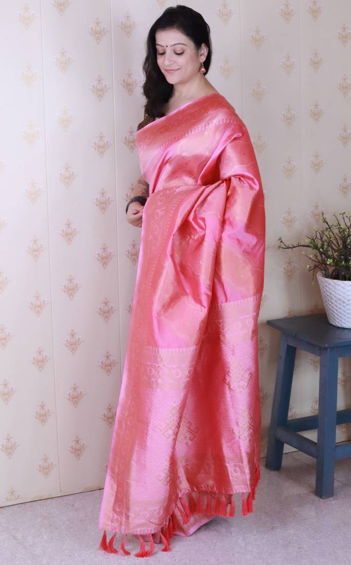 | • | Saree | : | Color- Pink / Fabric- Silk Blend |