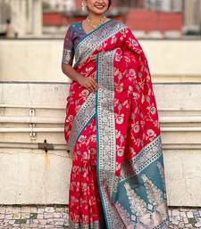 Pink banarasi silk zari woven saree with contrast blouse piece