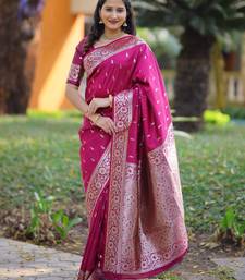 Pink soft banarasi silk zari weaving saree with matching blouse piece