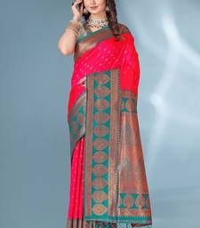 Pink soft silk paithani zari weaving saree with contrast blouse piece