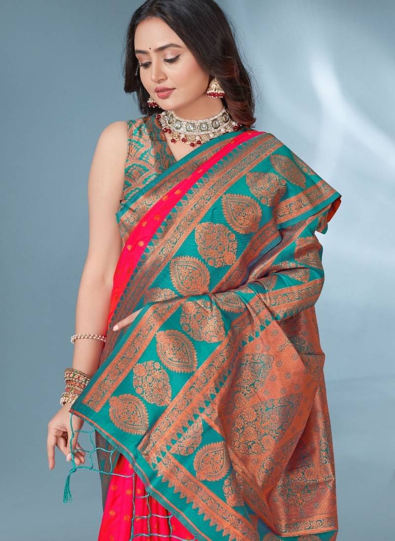 | Product Name | Pink Soft Silk Paithani Zari Weaving Saree With Contrast Blouse Piece | |