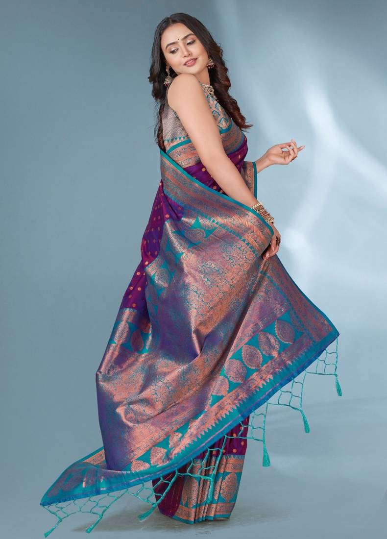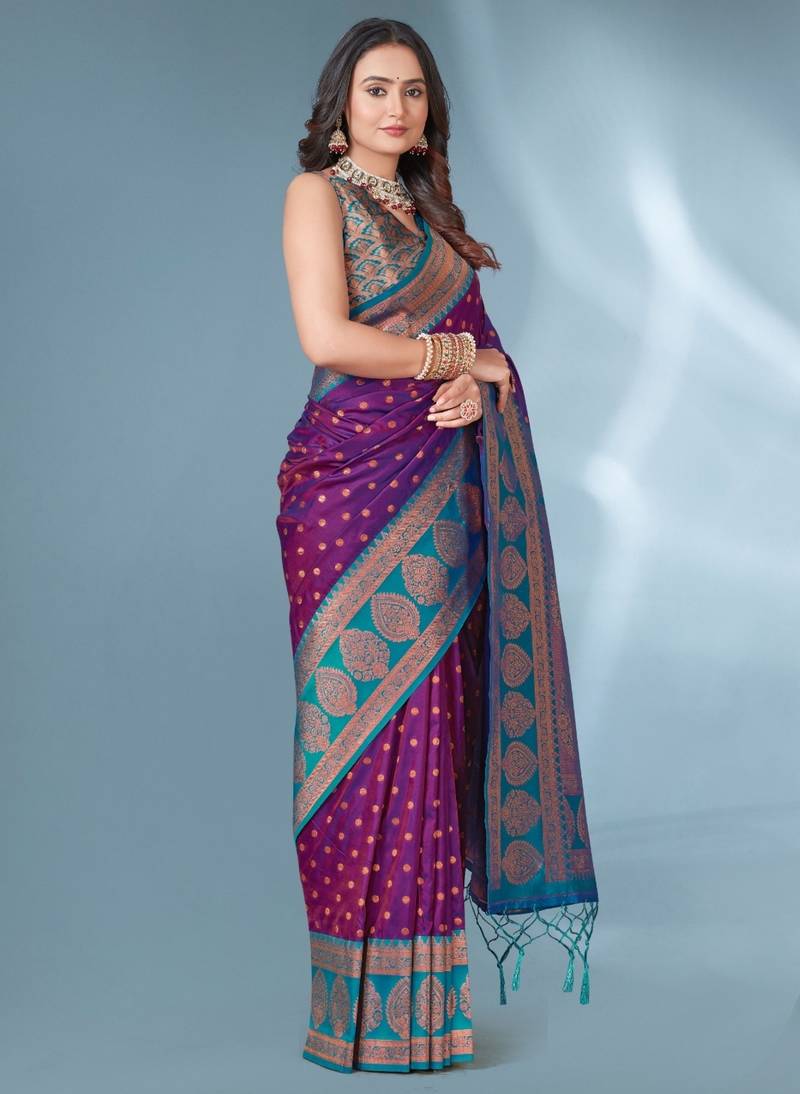 | • | Saree | : | Color- Purple / Fabric- Silk Blend |