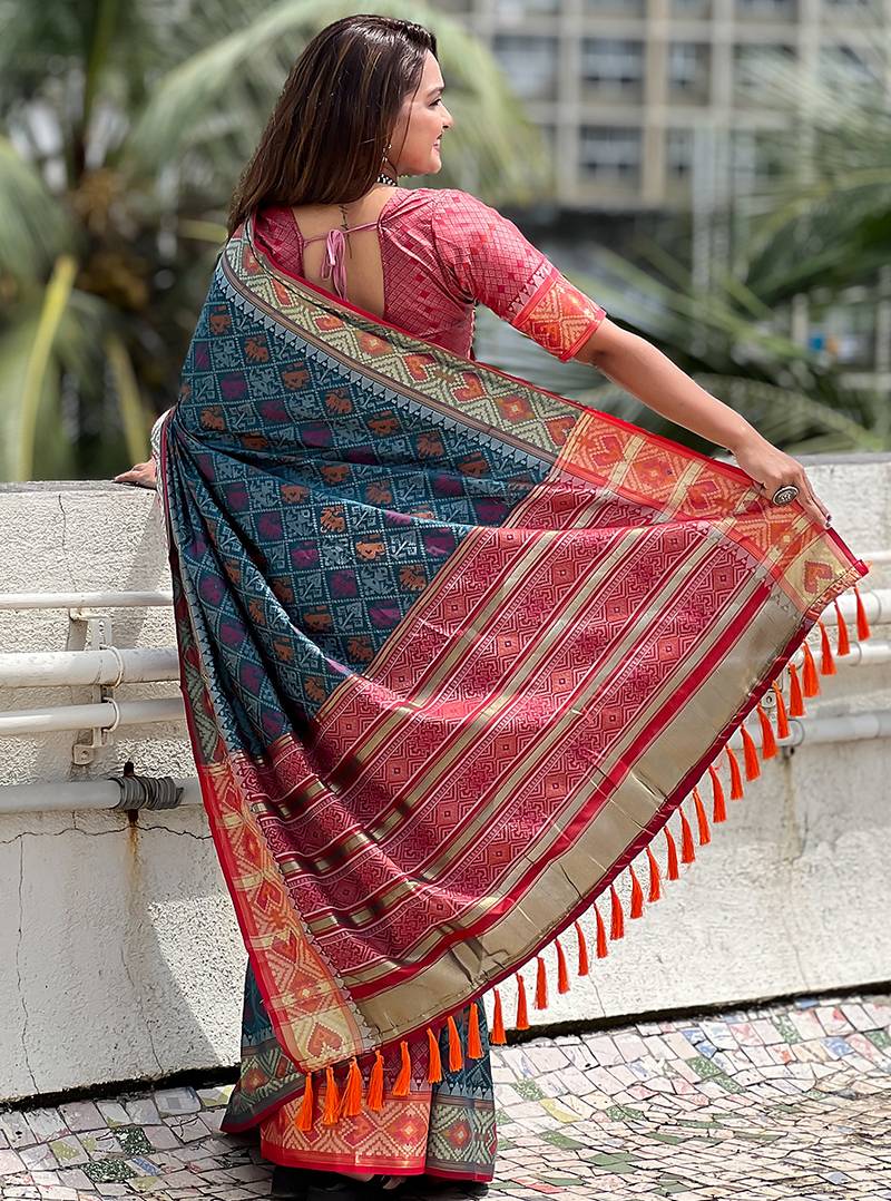 | Product Name | Teal Patola Silk Lagdi Pallu Zari Weaving Saree With Contrast Blouse Piece | |