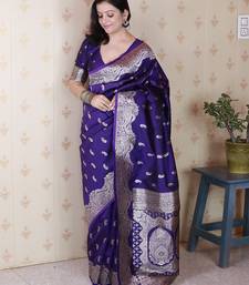 Violet banarasi silk zari woven saree with matching blouse piece
