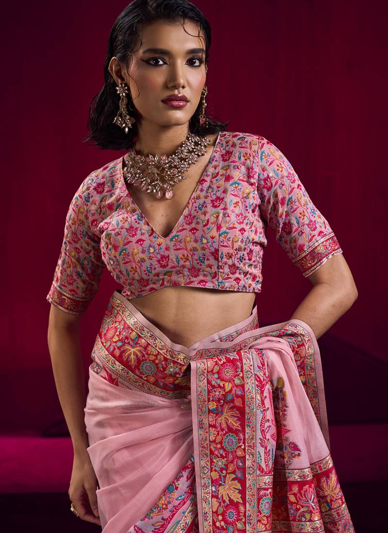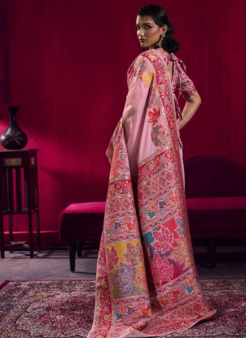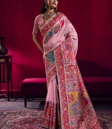 Baby pink modal pashmina handloom weaving saree