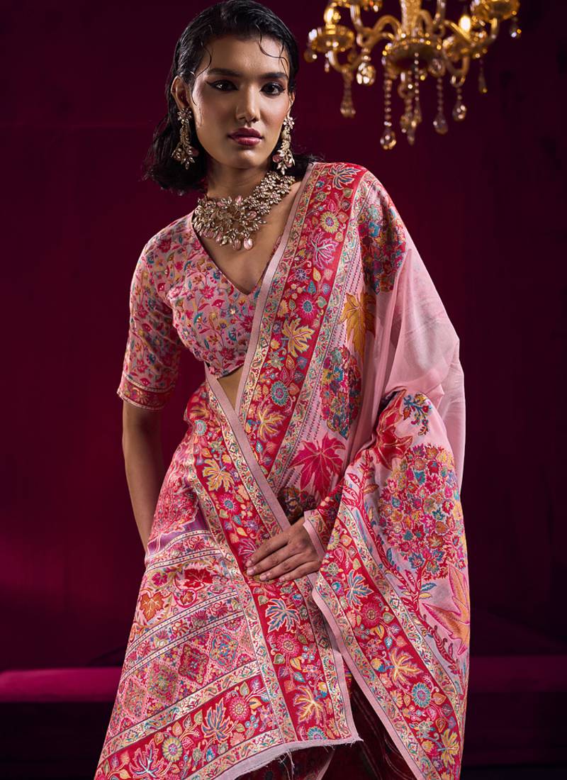 | Product Name | Baby Pink Modal Pashmina Handloom Weaving Saree | |