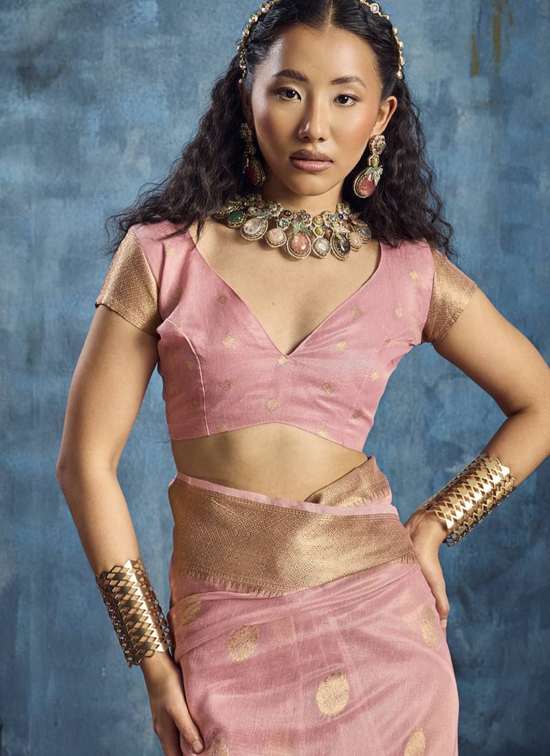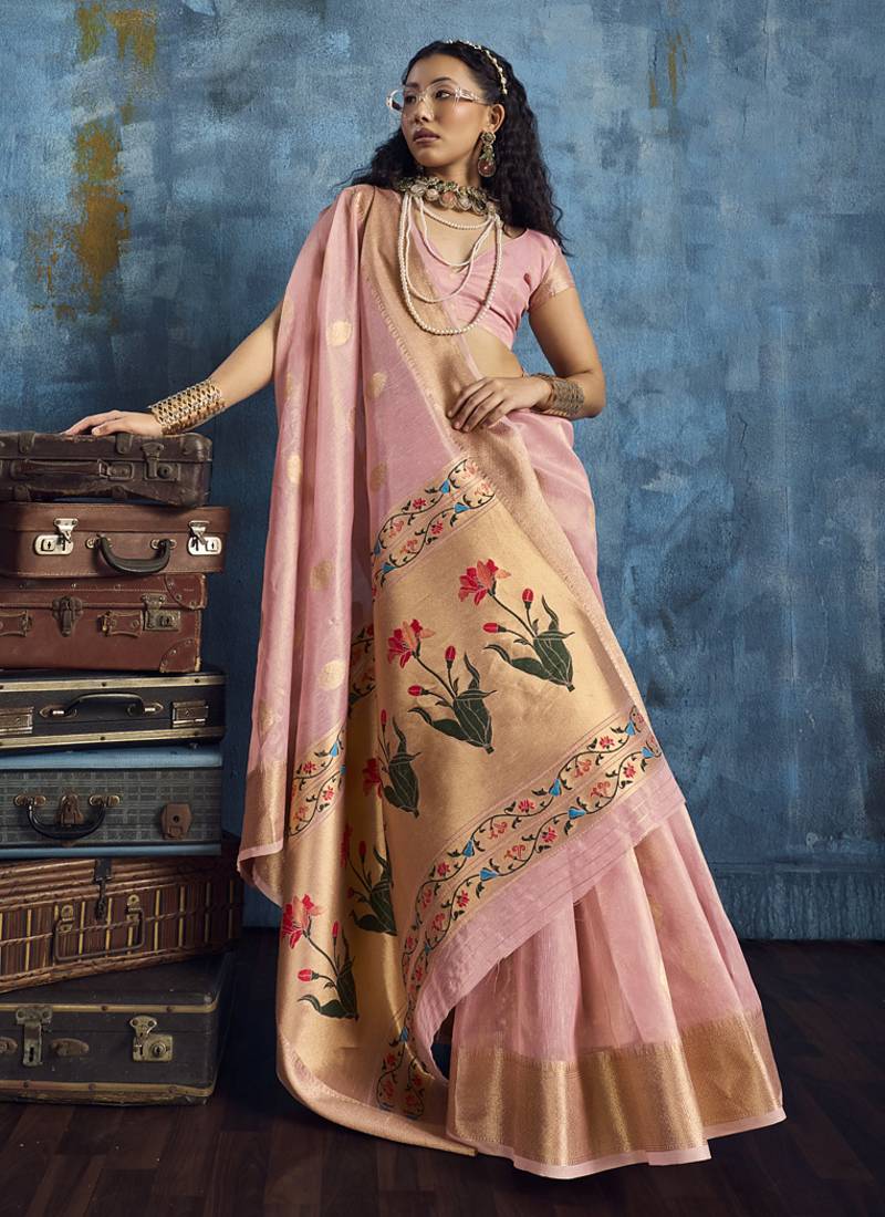 Product Name Baby Pink Zari Tissue Handloom Weaving Saree