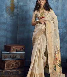 Beige zari tissue handloom weaving saree