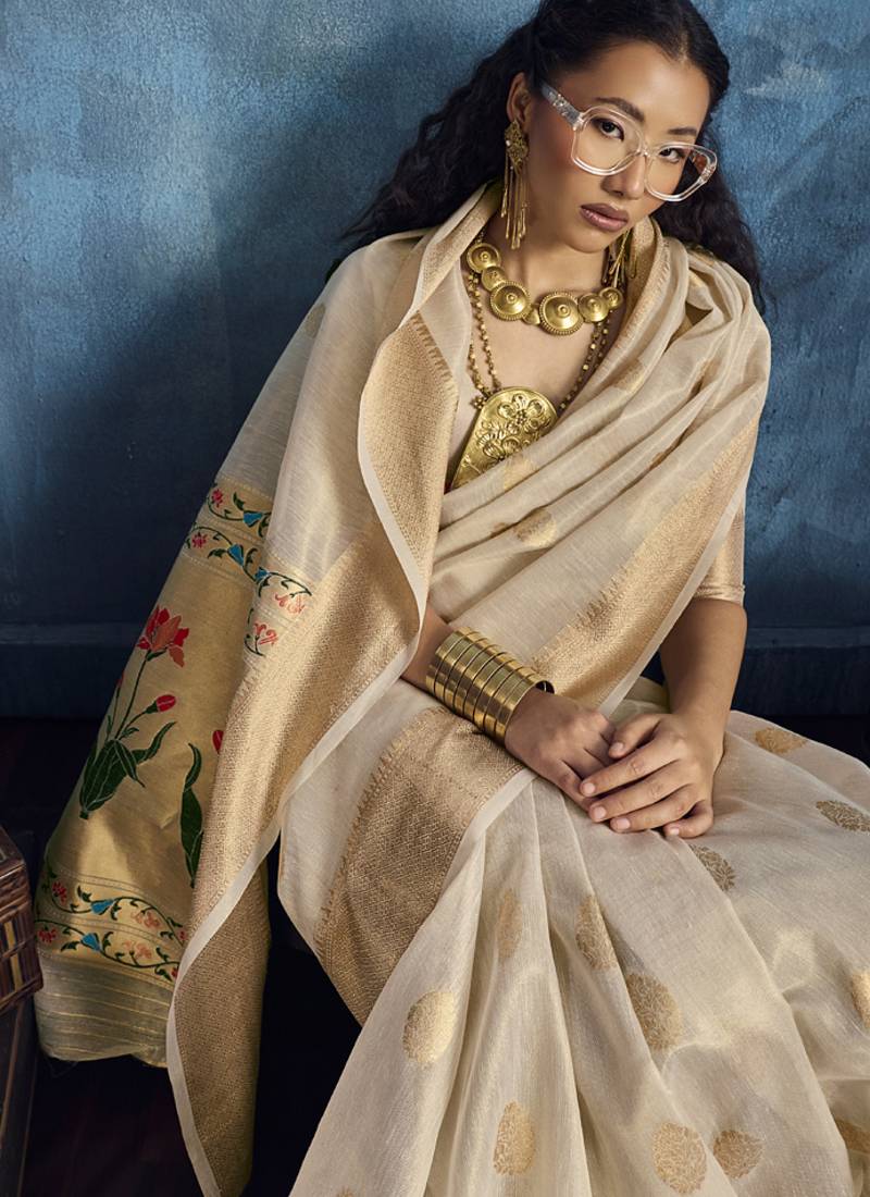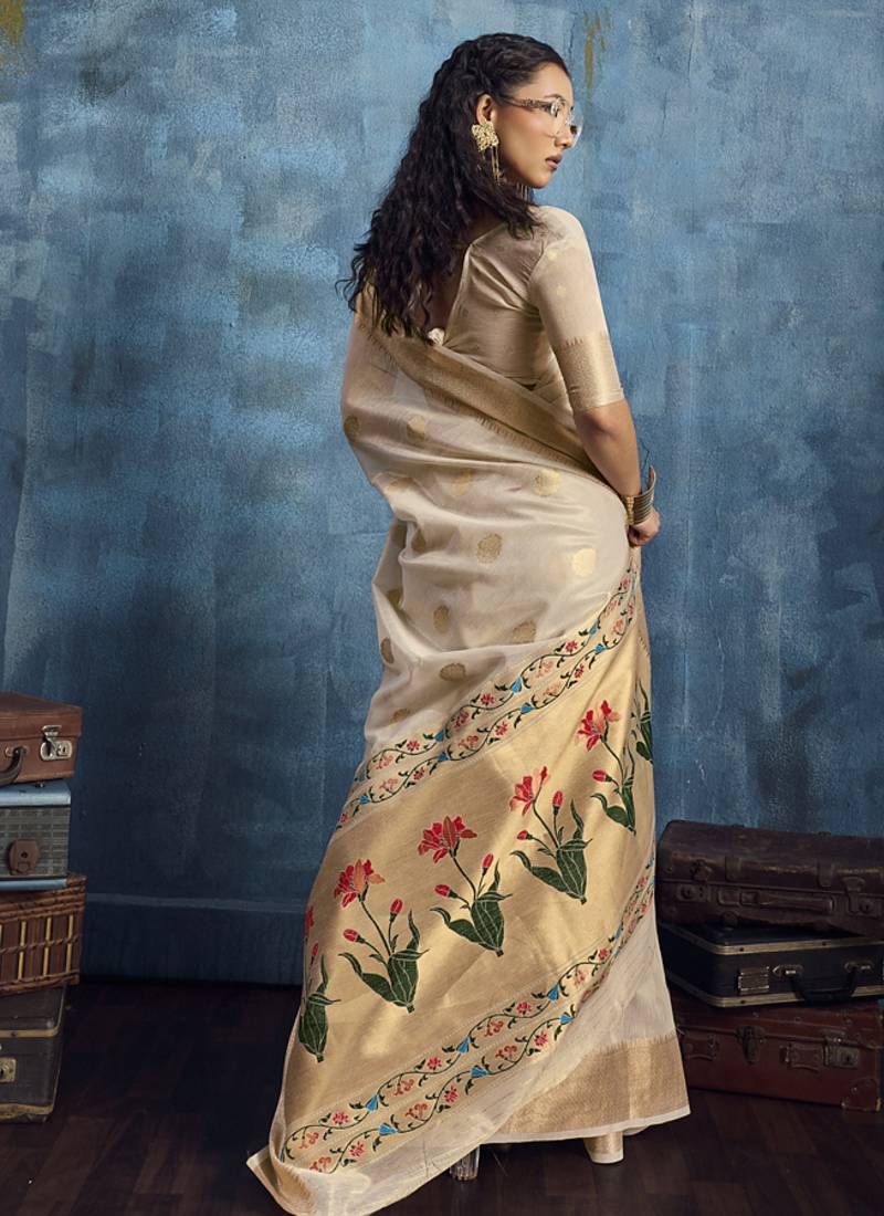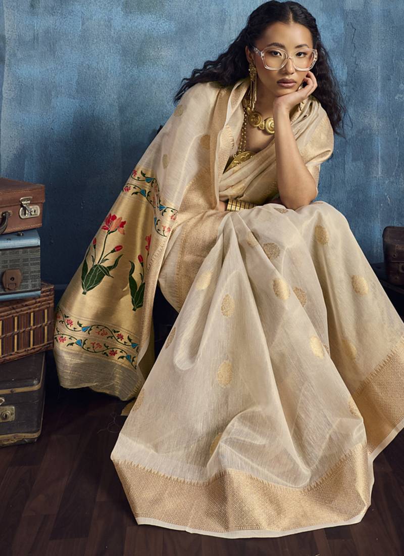 | Product Name | Beige Zari Tissue Handloom Weaving Saree | |