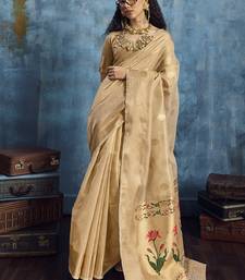 Cream zari tissue handloom weaving saree