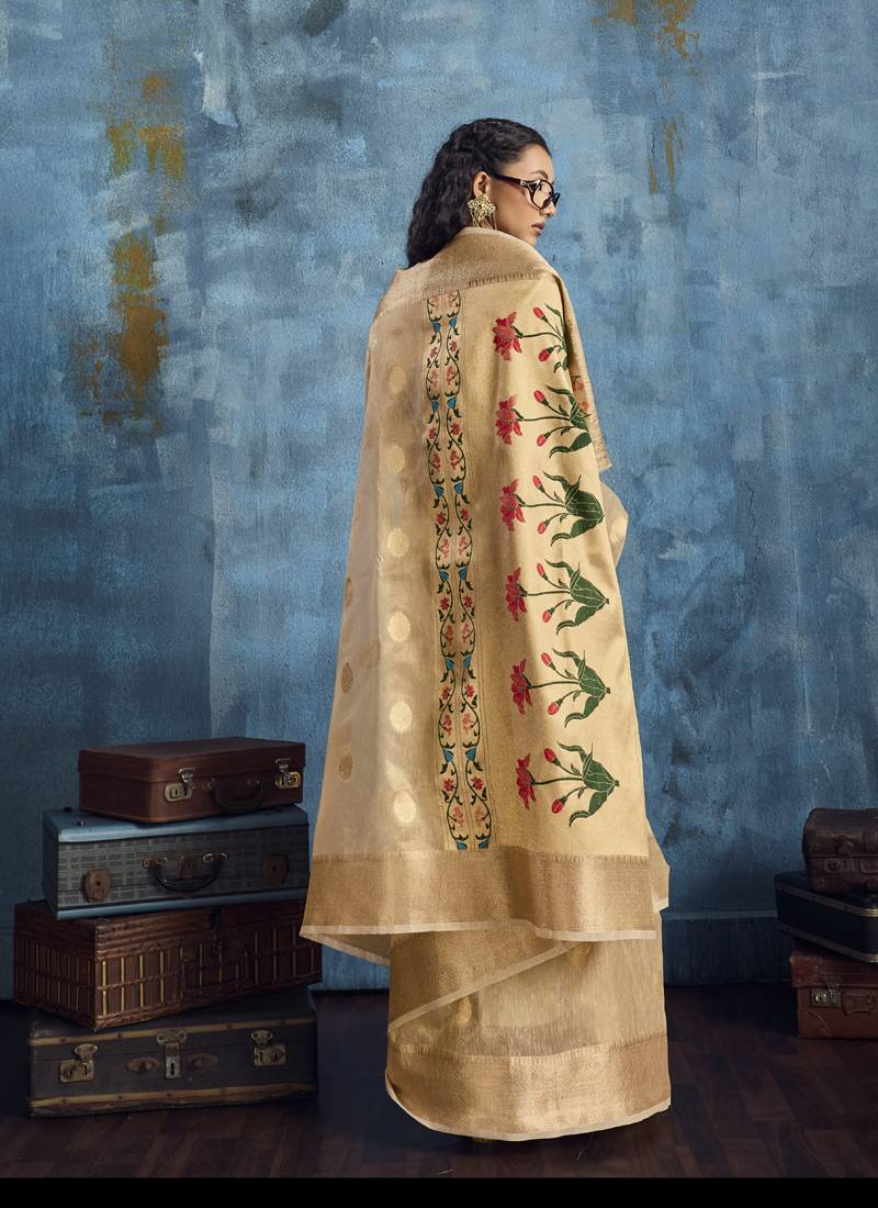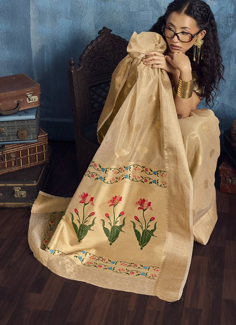| Product Name | Cream Zari Tissue Handloom Weaving Saree | |