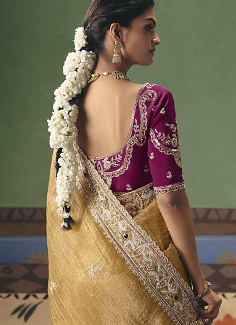 | • | Saree | : | Color- Golden / Fabric- Fancy Fabric |