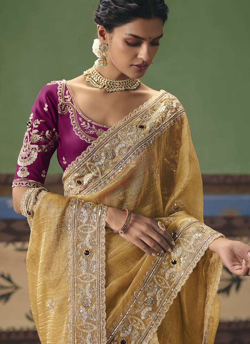 | Product Name | Golden Designer Embroidery Fancy Occasion Wear Saree | |