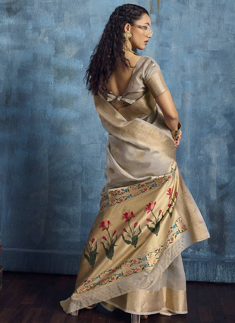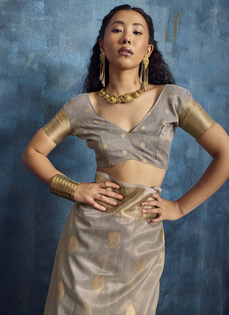 Product Name Gray Zari Tissue Handloom Weaving Saree