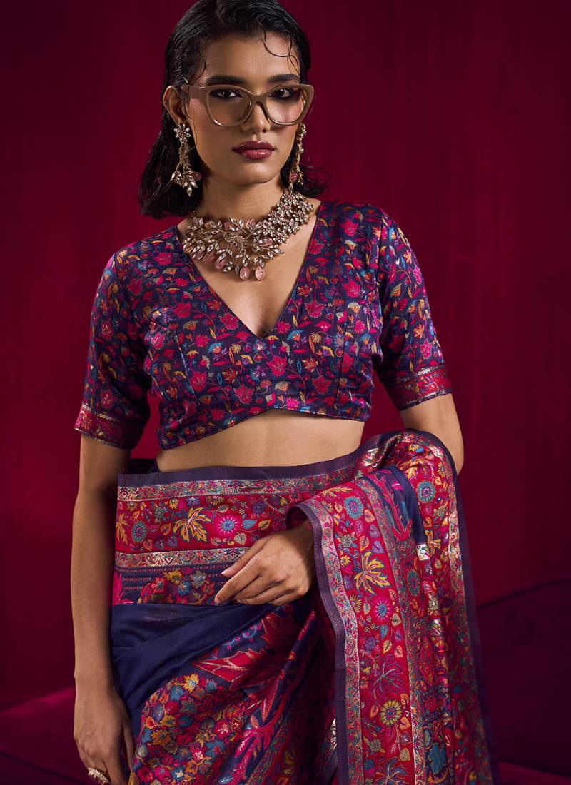 Product Name Navy Blue Modal Pashmina Handloom Weaving Saree
