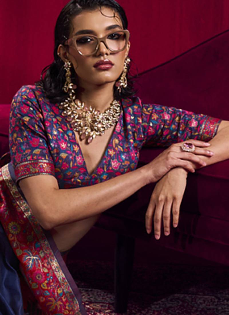 Saree : Color- Navy Blue / Fabric- Pashmina