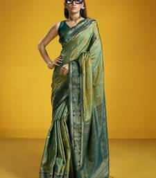 Olive pure silk handloom weaving festival wear saree